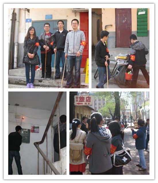 2013年5月11日上午九时许,志愿者一行16人到达了花园社区。社区居民楼的楼道内小广告严重泛滥,这些小广告就像光洁的肌肤上长了一片片牛皮癣,不仅影响城市美观,更严重的是,一些违法广告也混迹其中,给社会生活带来一定的危害。在小区负责人的指引下,将志愿者分成四组对指定区域进行了清理。大家对小区街道、小巷等卫生死角进行了彻底的打扫清除,对暴露的垃圾堆进行了清理,并对街道、楼道内的小广告进行清理,还原崭新的社区面貌。活动中,大家积极主动,不怕脏,不怕累,让社区面貌焕然一新。许多同学还发挥自己老员工的特长,对社区办公室内的电脑、打印机进行了维修,赢得了社区阿姨及社区居民的一致好评。