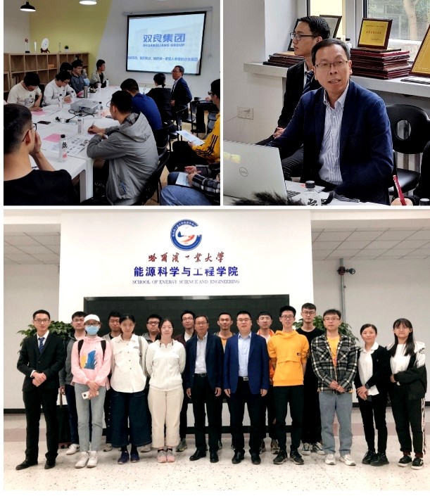 雷钦祥员工首先介绍了双良集团的企业理念和各分公司的发展现状,让同学们对双良集团有了大致的了解。接着,分析了当下锅炉行业需要解决的问题,包括能源的多样性利用、储能板块研究以及固体废弃物研究等问题,使同学们对所学专业在工程方面的实际应用有了新的认识。最后,雷钦祥员工结合当下“碳中和,碳达峰”的方针政策,详细地分析了政策导向对科技研究、产业发展的重要影响。