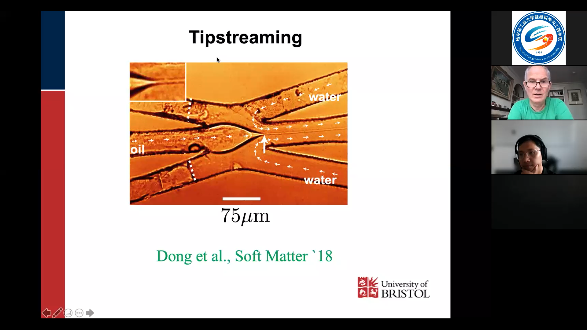 Jens G. Eggers教授是英国布里斯托大学(University of Bristol)数学系的应用数学教授,同时担任著名期刊Physical Review Letters的编委。Jens Eggers教授先后在德国亚琛工业大学(RWTH Aachen University)和德国马尔堡菲利普大学(Philipps-Universität Marburg)取得硕士学位和博士学位。Jens Eggers教授主要的研究方向为多长度尺度系统中的非线性流动。这些现象很多时候都有方程奇异的特点。在这些系统中,奇异解的结构常是自相似的,不同长度尺度下的物理量场可以通过尺度变换实现相互映射。在实际应用方面,理解奇异解的结构对于理解如打印和涂膜加工等工业生产过程的建模起着至关重要的作用。