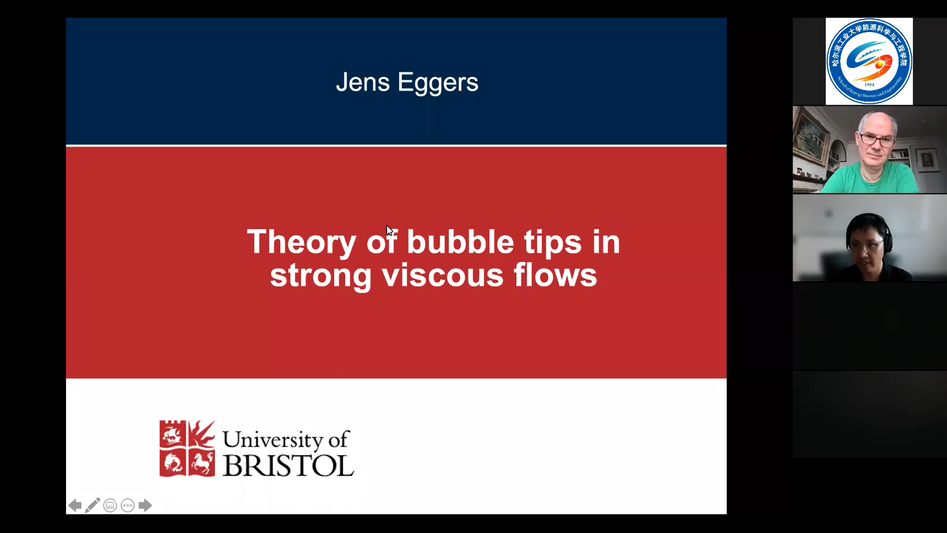 北京时间2021年7月2日16:00,Jens G. Eggers教授应邀参加2021年6776永利集团新能源系列国际暑期学校暨第二届流体力学大讲堂,并做了一个小时关于“强粘性流动中的气泡尖端理论”的演讲。