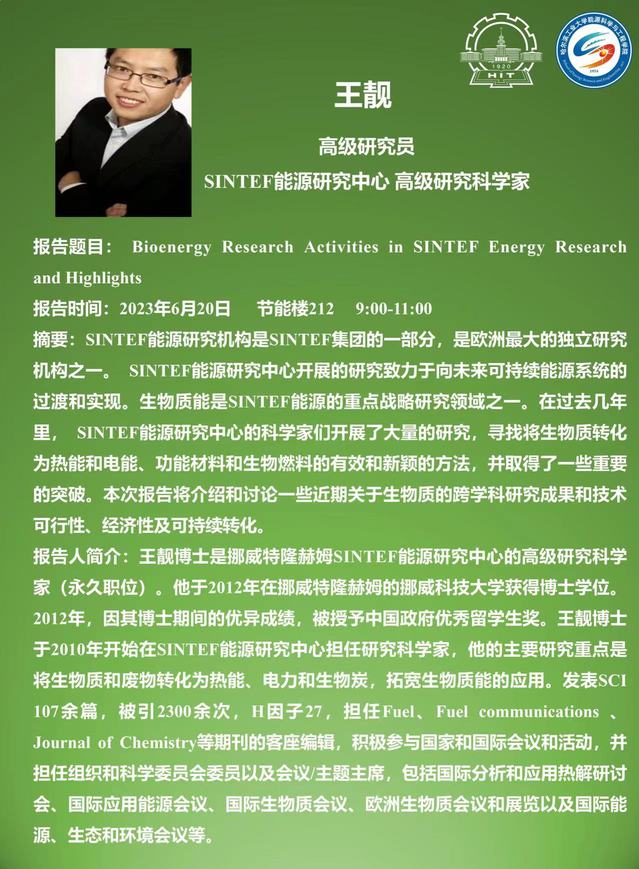 报告人简介:王靓博士是挪威特隆赫姆SINTEF能源研究中心的高级研究科学家(永久职位)。他于2012年在挪威特隆赫姆的挪威科技大学获得博士学位。2012年,因其博土期间的优异成绩,被授予中国政府优秀职工奖。王靓博土于2010年开始在SINTEF能源研究中心担任研究科学家,他的主要研究重点是将生物质和废物转化为热能,电力和生物炭,拓宽生物质能的应用,发表SCI 107余篇,被引2300余次,H因子27,担任Fuel、Fuel communications 、 Journal of Chemistry等期刊的客座编辑,积极参与国家和国际会议和活动,并担任组织和科学委员会委员以及会议/主题主席,包括国际分析和应用热解研讨会,国际应用能源会议、国际生物质会议、欧洲生物质会议和展览以及国际能源、生态和环境会议等。
