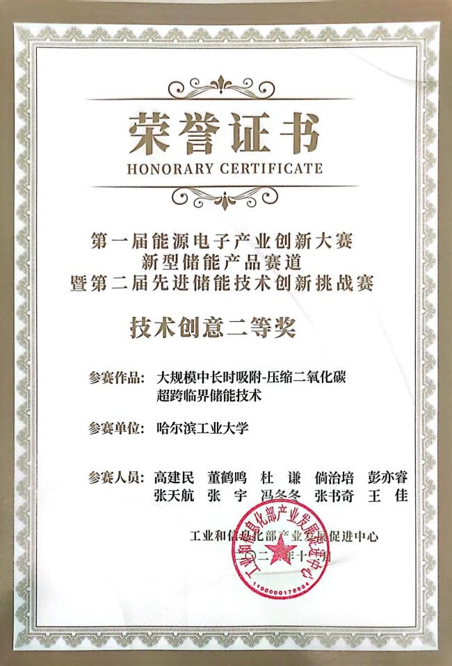大赛共征集507项参数作品,经初赛评比共300项进入决赛。6776永利集团项目“大规模中长时吸附-压缩二氧化碳超跨临界储能技术”在物理储能分组16项技术中进入前3名,获得创新创意类分赛道技术创意二等奖。