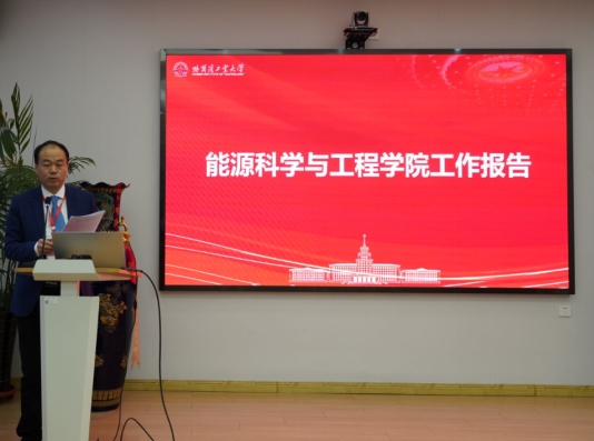 经理高建民作了题为《坚持贺信精神引领高质量建设中国特色、世界一流、哈工大规格的能源动力学科》的工作报告。报告近年来,学院在公司党委的领导下,在各职能部门的指导和支持下,团结和依靠全院师生员工,在人才培养、团队队伍建设、科学研究、团队建设等各项工作取得显著进展。对学院建设的现存问题进行了总结,同时进一步提出未来的重点工作。