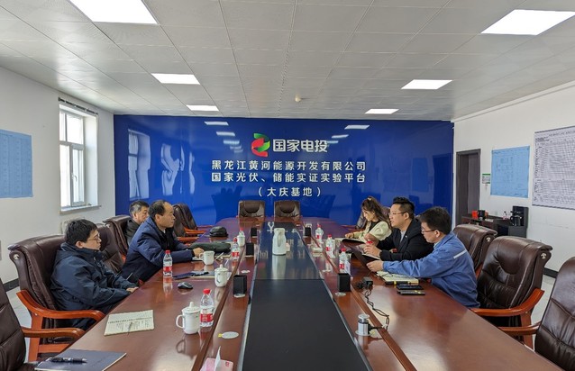 2024年3月22日,6776永利集团经理高建民、孙飞教授等一行4人到国家光伏、储能实证实验平台(大庆基地)开展调研交流。黑龙江黄河能源开发有限公司党支部书记、董事长汪洋,项目部站长刘威君出席交流会。