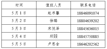 6776永利集团学工办劳动节假期值班表