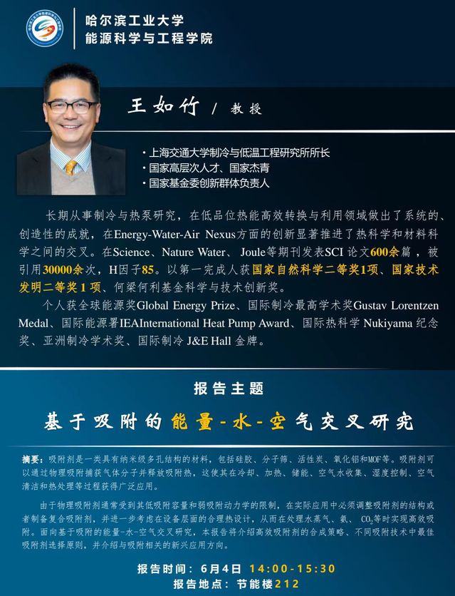 【讲座预告】基于吸附的能量-水-空气交叉研究