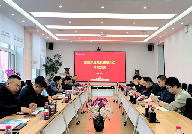 东营市人社局办公室主任王文涛,东营市垦利区委组织部副部长、人社局局长胥全永,东营市垦利区科技局局长张鹏,东营市垦利区城乡基层治理服务中心副主任、人才办负责人王大彬以及企业代表,能源与动力工程系主任韩磊,教授别如山及张昊春,辅导员赵书馨、邱燚参加会议。
